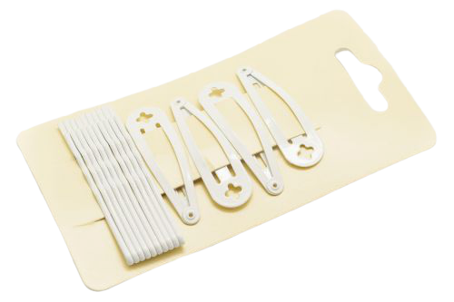 Podręczny komplet spinek i wsuwek w kolorze białym. Spinki pozwalają upiąć dowolną, ulubioną fryzurę, ale również stanowią jej przepiękne wykończenie i uzupełnienie.